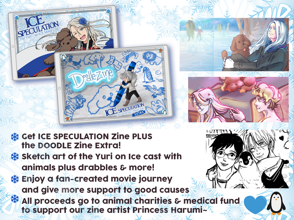 ❄️ INCLUDES the Bonus Digital PDF DOODLE Zine featuring 25+ new works of art, shortfics & drabbles and early movie art creations! The DOODLE art is sketch-style and features our awesome YOI cast with ANIMALS. Our thanks to you for stepping up your support. 🐯🐘